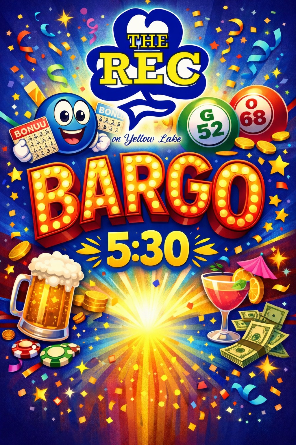 The REC 7861 Birch Street, Danbury, WI, United StatesBargo on Thursdays brings a big, lively crowd to The REC on Yellow Lake and sets the tone for an easy slide into the weekend! Doors open at 3 PM so people can settle in, grab a drink, and enjoy the upbeat atmosphere before the kitchen starts serving at 4 PM. Bargo begins at 5:30…