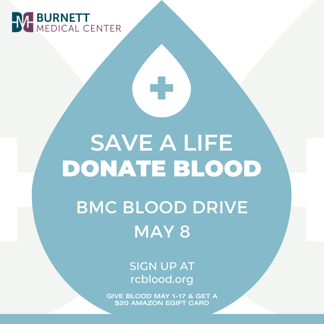 Burnett Medical Center 257 West St. George Ave, Grantsburg, WI, United States𝗛𝗲𝗹𝗽 𝗦𝗮𝘃𝗲 𝗟𝗶𝘃𝗲𝘀 – 𝗗𝗼𝗻𝗮𝘁𝗲 𝗕𝗹𝗼𝗼𝗱! One pint of blood can save up to three lives and most of us will need blood in our lifetime. Fortunately, Burnett Medical Center and the American Red Cross are teaming up to host a blood drive at BMC on May 8th, from 9am to 3pm. Please consider signing…